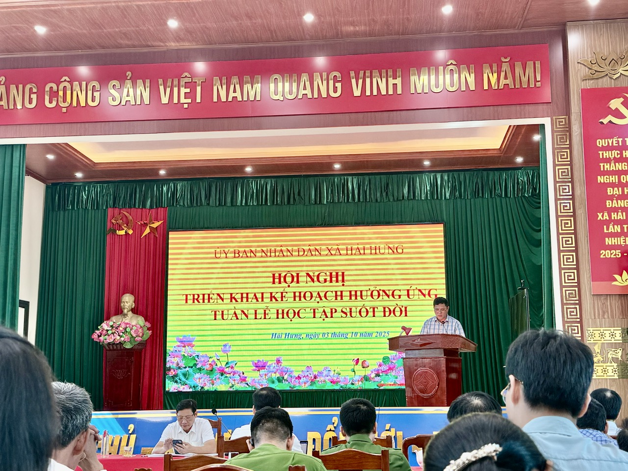 Cũng tại Hội nghị này, UBND xã triển khai Kế hoạch Hưởng ứng tuần lễ học tập suốt đời năm 2025 nhằm mở rộng cánh cửa học tập cho mọi người dân, thúc đẩy việc ứng dụng công nghệ để nâng cao chất lượng nguồn nhân lực. Mỗi người dân Hải Hưng, đặc biệt là cán bộ, công chức, viên chức, người lao động và học sinh, sinh viên, hãy là một đại sứ tri thức. Hãy tích cực tham gia, tìm hiểu và chia sẻ thông tin về Tuần lễ để lan tỏa thông điệp Học tập suốt đời đến cộng đồng, cùng nhau xây dựng một xã hội học tập hiện đại, hiệu quả.